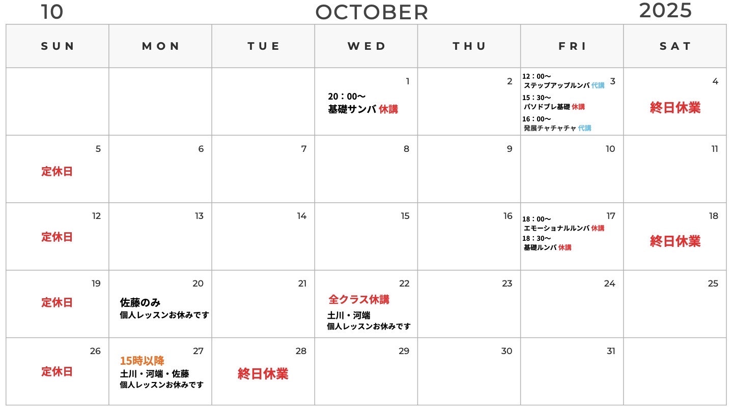 10月休講情報訂正のお知らせ
