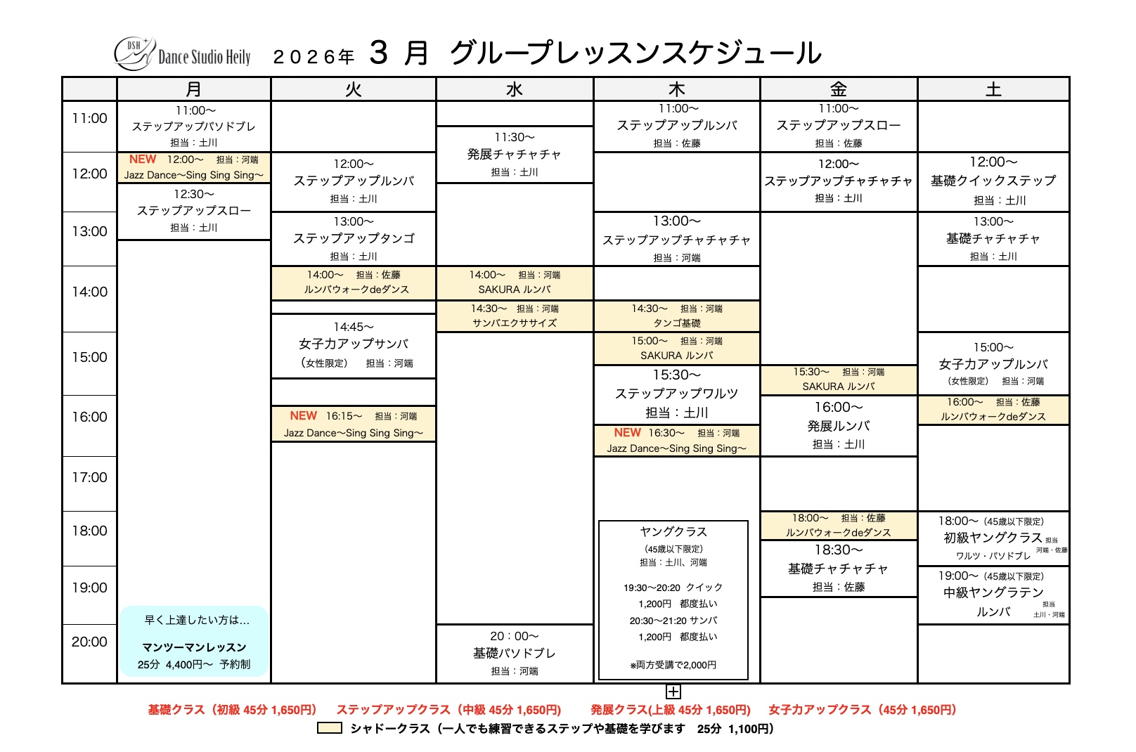 3月グループレッスンスケジュールを更新しました